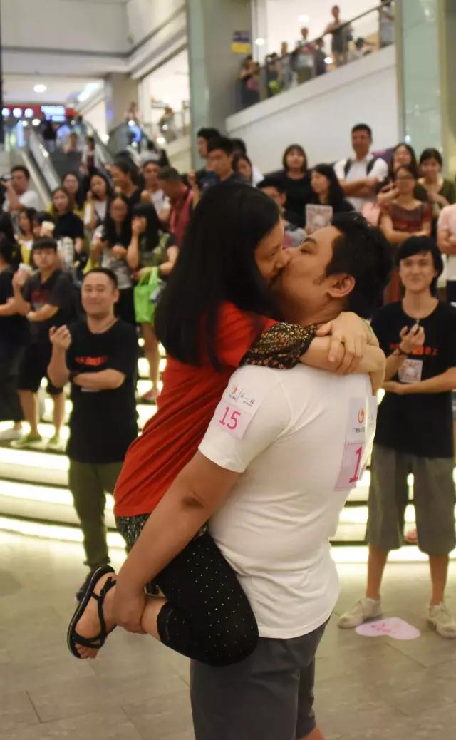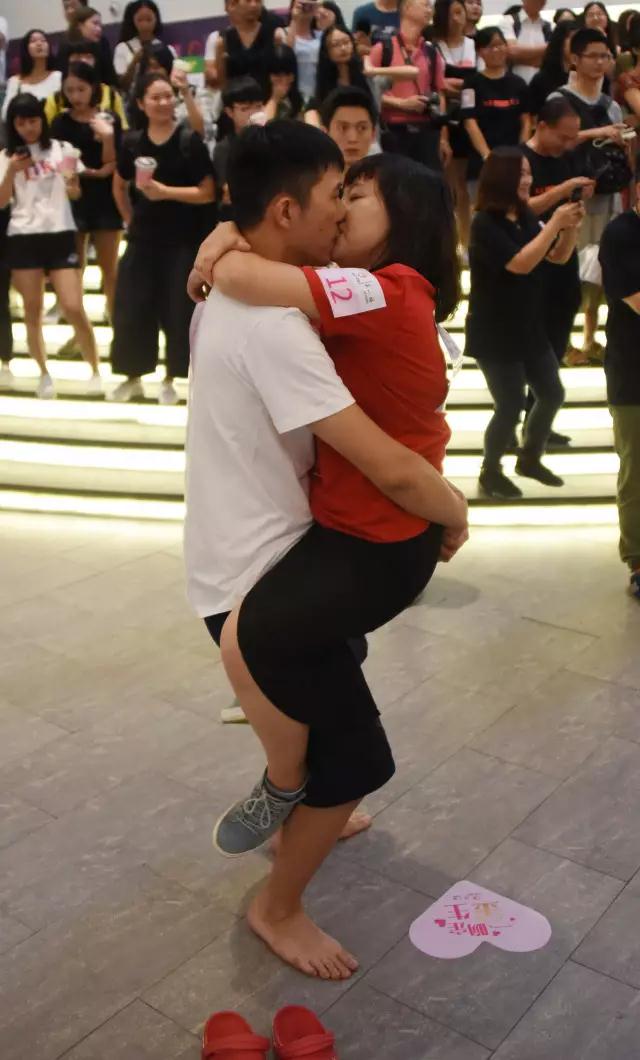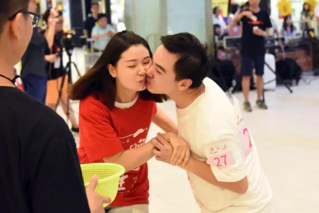 活動(dòng)一開(kāi)始就給情侶們愛(ài)的初考驗(yàn),情侶在親吻時(shí)其中一方要抱起另外一方,被抱起的雙腳不能落地,吻住最長(zhǎng)時(shí)間的勝出。這一關(guān)考驗(yàn)吻技,更重要的是考驗(yàn)?zāi)杏蚜Γ?/span>