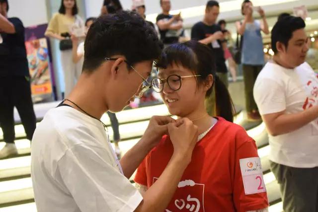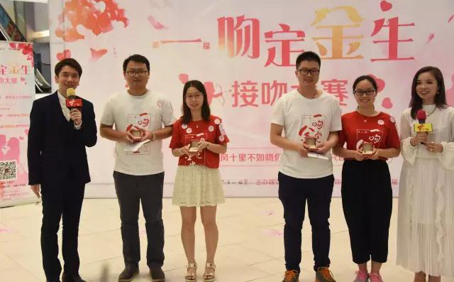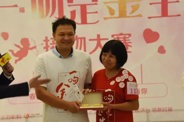 16號(hào)、19號(hào)參賽情侶與現(xiàn)場(chǎng)觀眾分享了感人的愛(ài)情故事,兩隊(duì)情侶獲得了二等獎(jiǎng),贏得了第一福送出的黃金對(duì)戒。